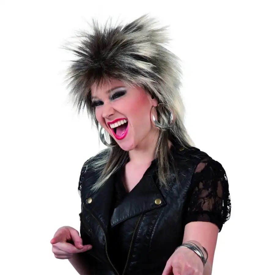 En arborant cette perruque punk rock brune avec mèches blondes, vous ferez sensation auprès de vos amis lors des fêtes déguisées.