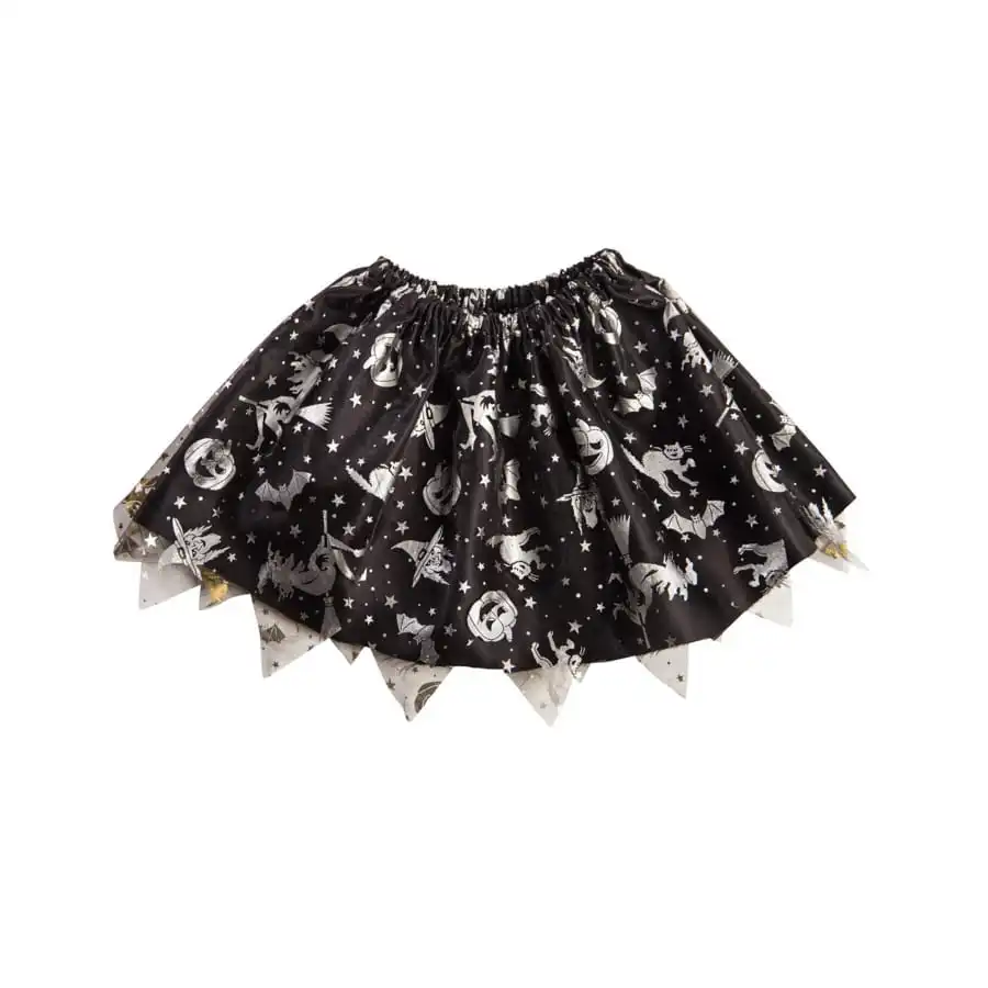 Ce petit tutu noir avec imprimés Halloween argentés, apportera une touche originale au costume de sorcière de votre fillette.