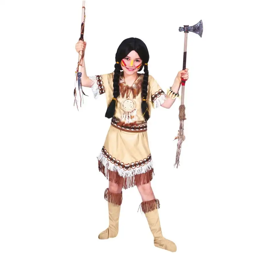 Transformez votre fille en amĂ©rindienne le temps d’une soirĂ©e dĂ©guisĂ©e en lui offrant cette petite robe Ă franges d’indienne pour enfant.