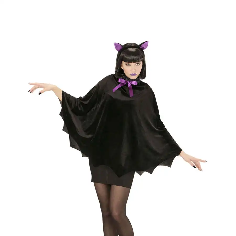 Prenez le pari de devenir la première chauve-souris sexy d’Halloween, avec le poncho chauve noir et violet pour femme.