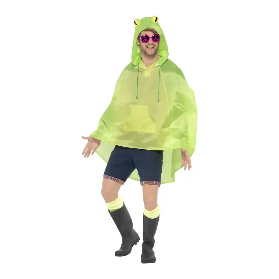 Imitez le croassement d’une grenouille avec ce dĂ©guisement dĂ©jantĂ©. Optez pour une sortie en couple Ă la campagne dans ce poncho vert. Vous ne craindrez pas la pluie car il est impermĂ©able. Il prend vĂ©ritablement la forme d’une grenouille avec sa capuche aux gros yeux ! Cet accessoire hors du commun est proposĂ© en taille unique. Il est muni d’un sac Ă cordon.