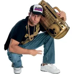 Munissez-vous de cette radio gonflable old school couleur or pour mettre en valeur votre décoration lors de la soirée à thème bling bling, disco ou paillettes.