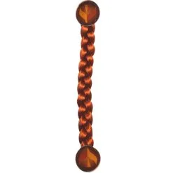 Une grosse tresse faite de mèches brunes accompagne l’ensemble.