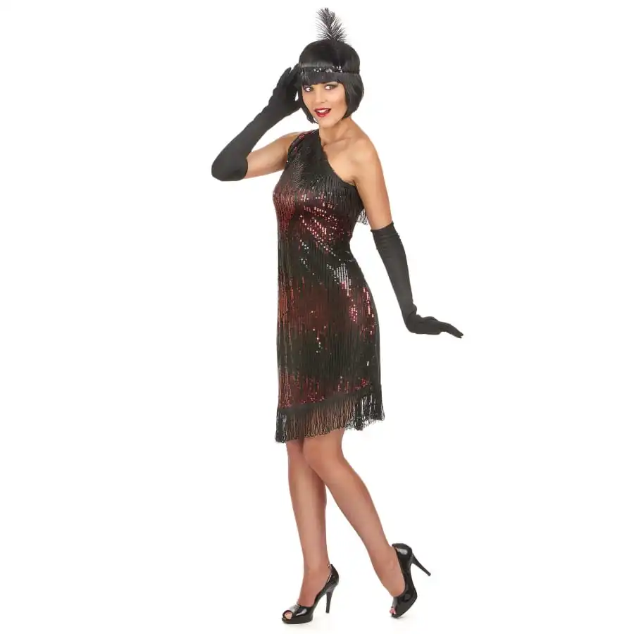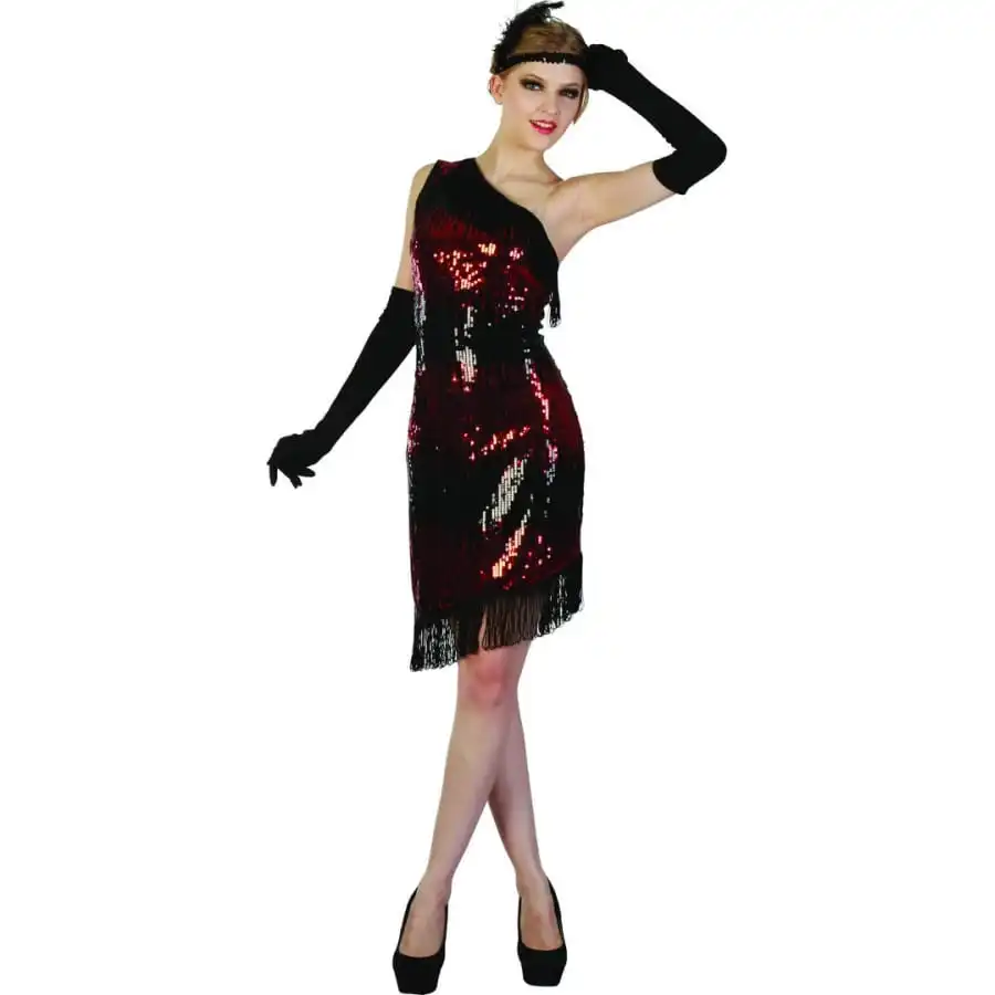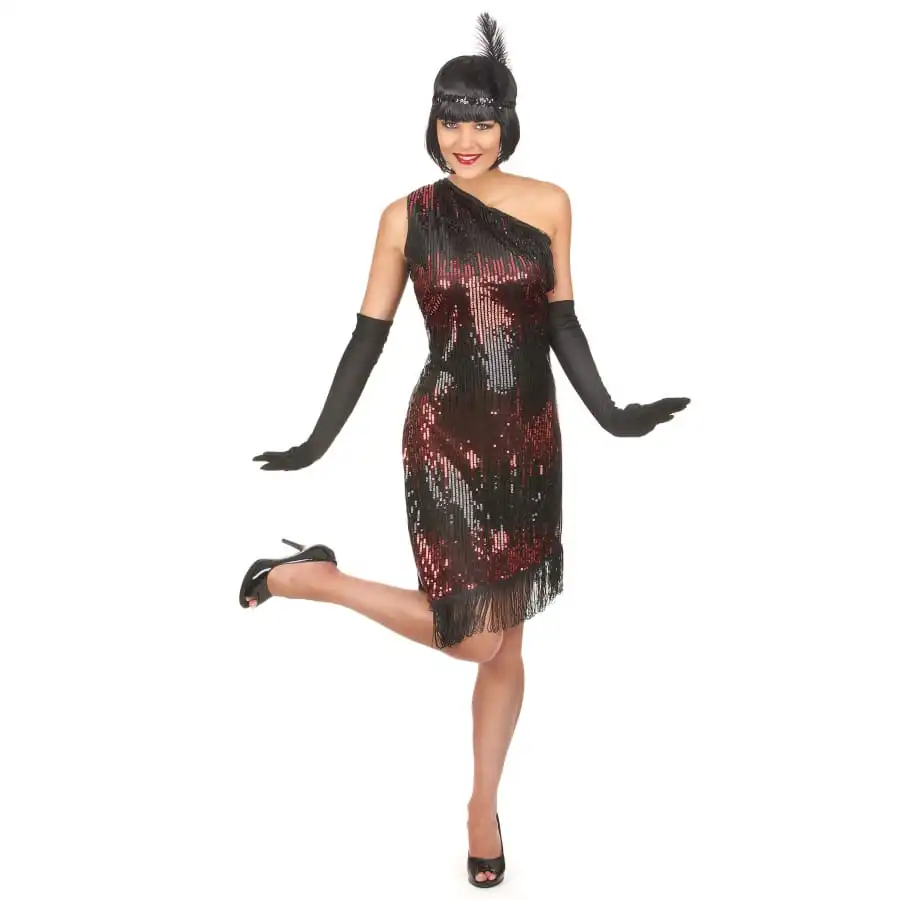 Misez sur le look des années 20 en enfilant cette robe charleston noir rouge à paillettes.
