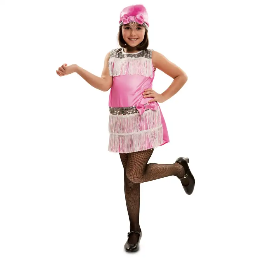 Plongez votre fille dans les années rétro avec la robe Charleston rose pour enfant avec coiffe.
