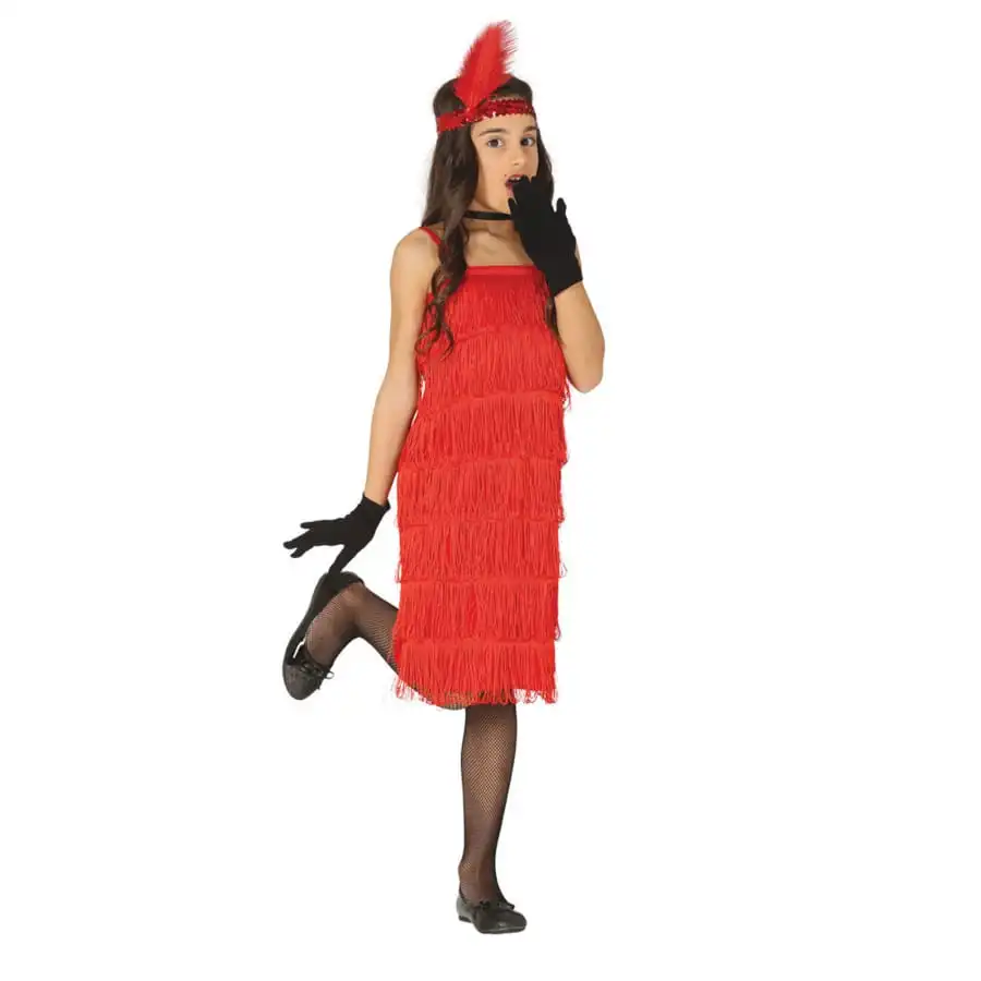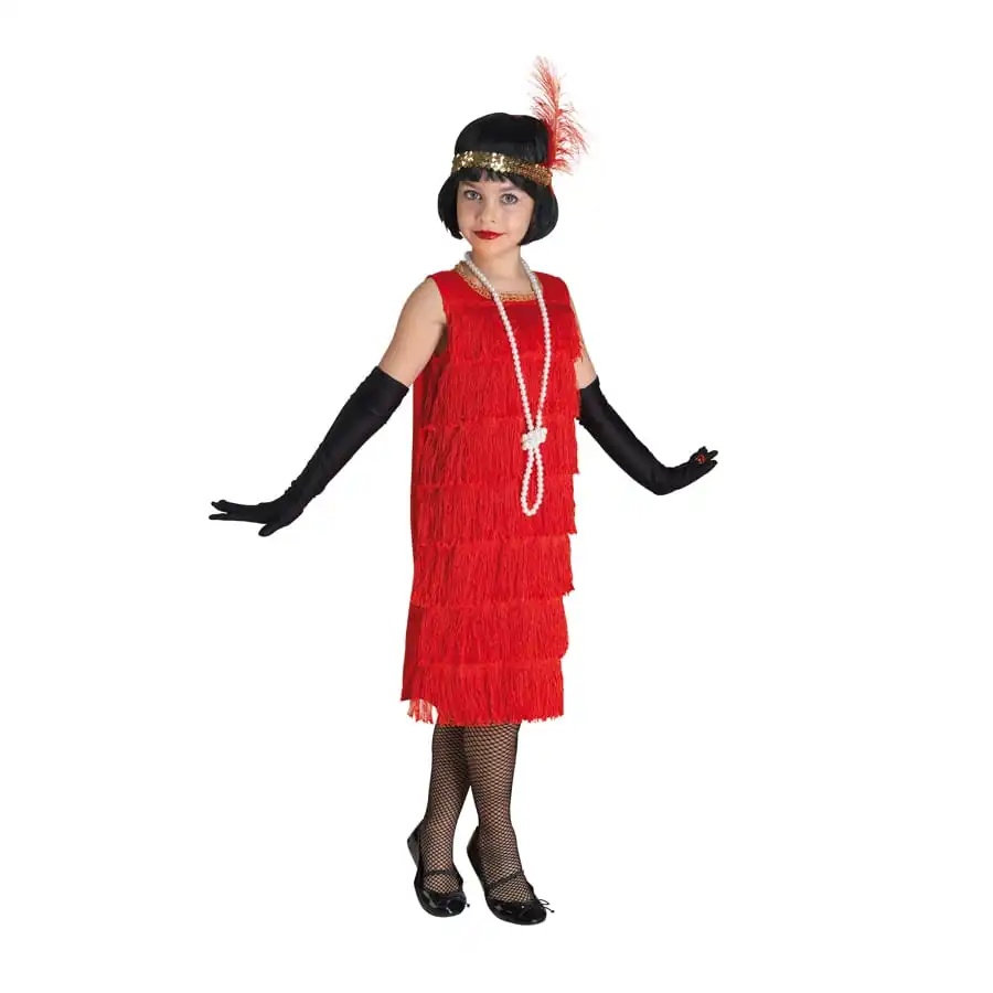 La robe charleston rouge à franges pour enfant est destinée aux filles.