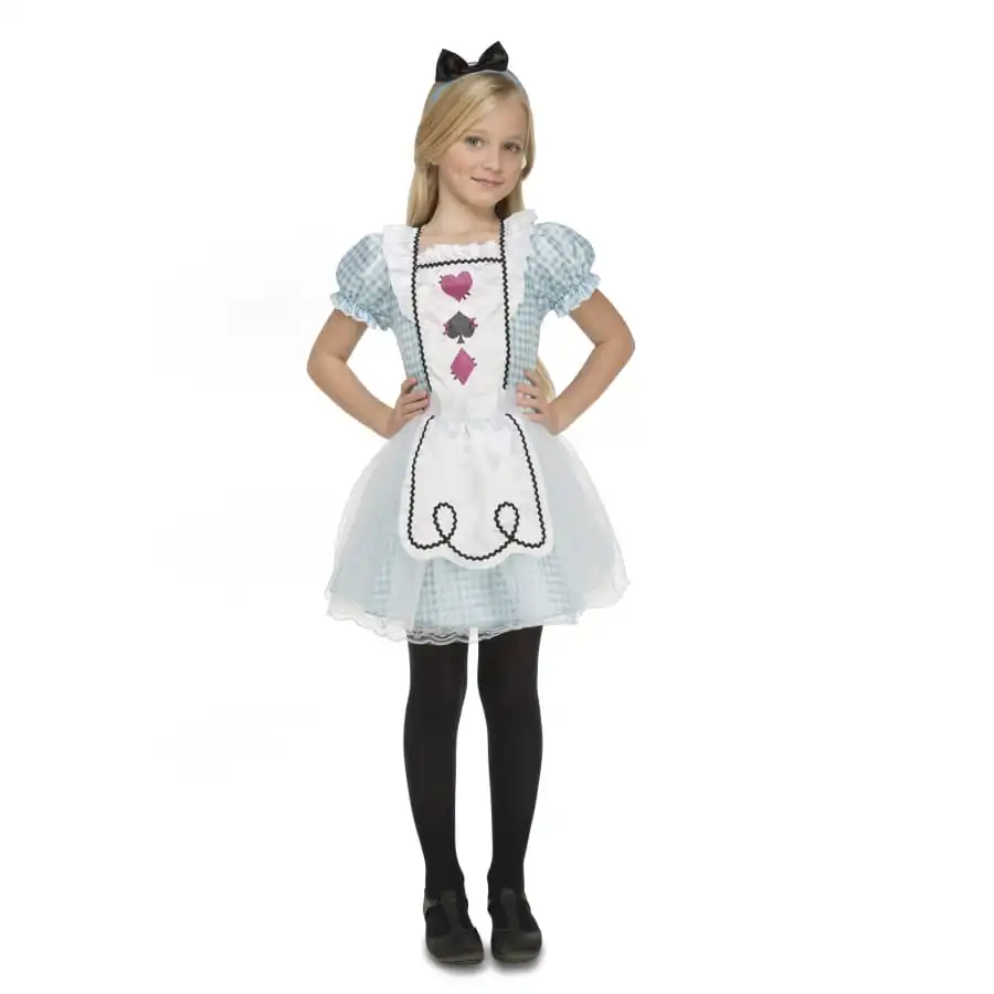 Plongez votre fille dans le fabuleux monde d’Alice, avec la robe d’Alice pour enfant avec coiffe.