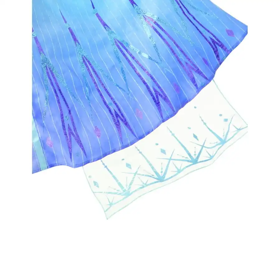 Cette robe reprend le modèle au design très étudié de la tenue portée par Elsa dans le film La reine des neiges 2.