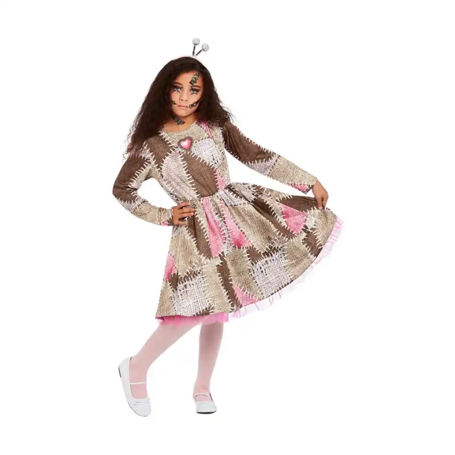 La robe de poupée vaudou rapiécée pour enfant sera parfaite pour plonger votre fille dans un Halloween où règne la magie et la sorcellerie.