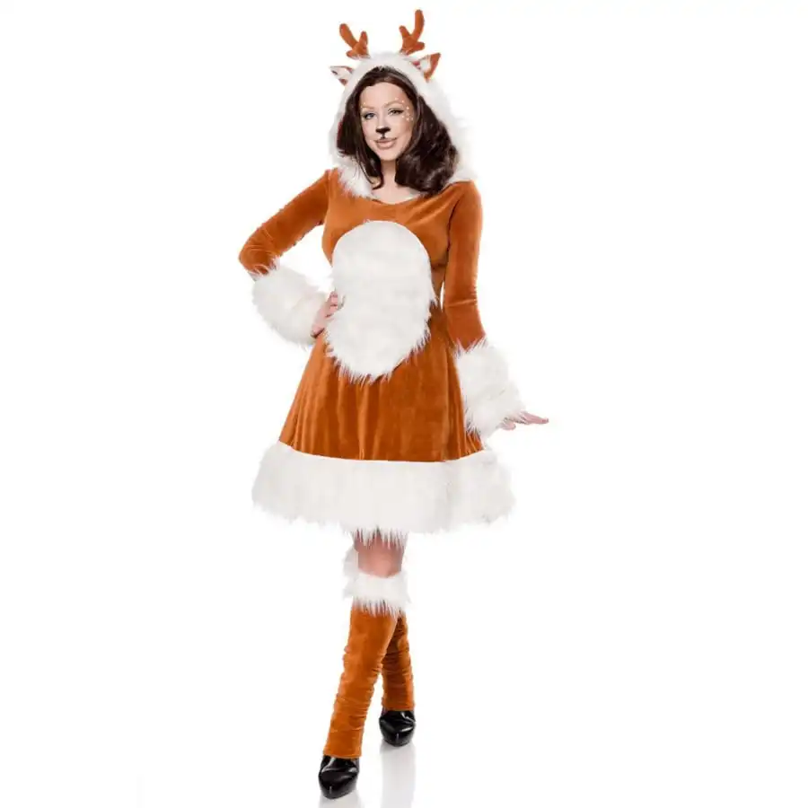 La robe de renne du Père Noël, oreilles et bois de luxe est un costume destiné aux femmes.