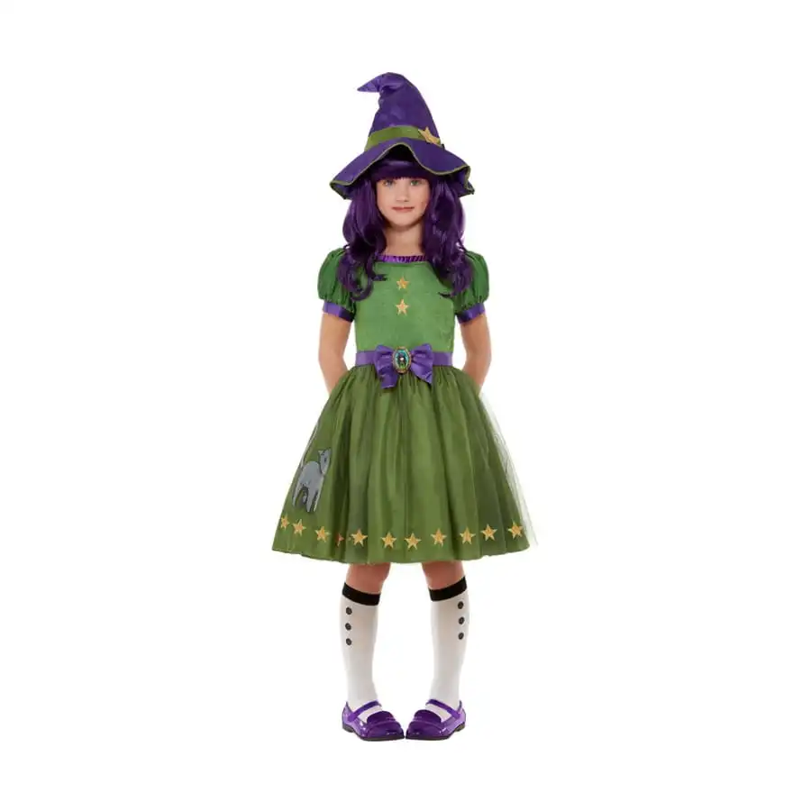 Cet ensemble inclut un chapeau, une robe et un balai.