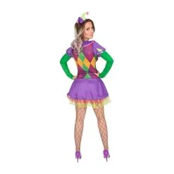 Pour célébrer Halloween, voici pour vous la robe violette arlequin et mini chapeau pour adulte.
