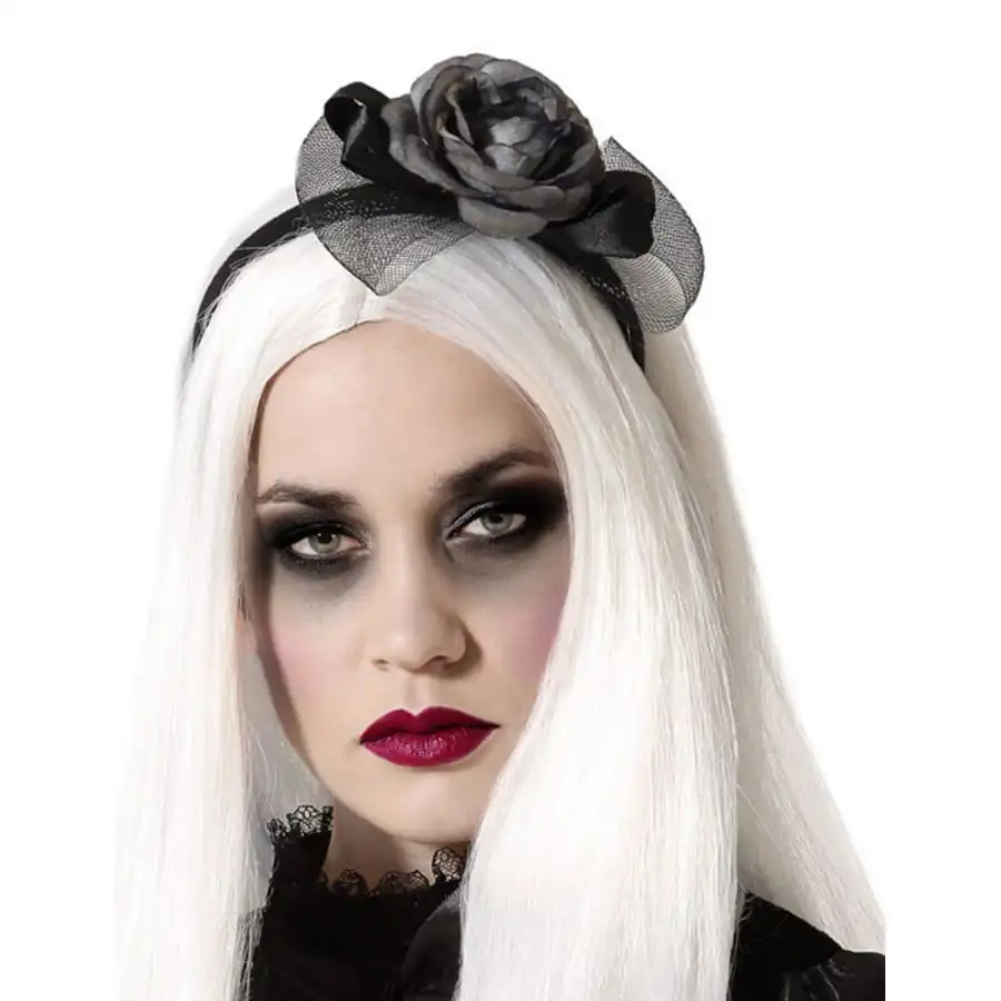 N’oubliez surtout pas les accessoires Ă Halloween et offrez-vous la rose grise sombre sur serre-tĂȘte, adulte.