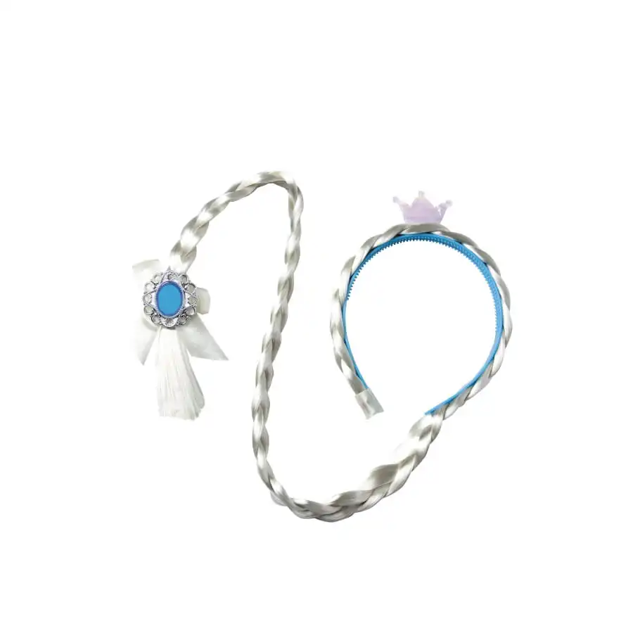 Le serre-tĂȘte en plastique bleu avec tresse de princesse des neiges est un accessoire pour fille.