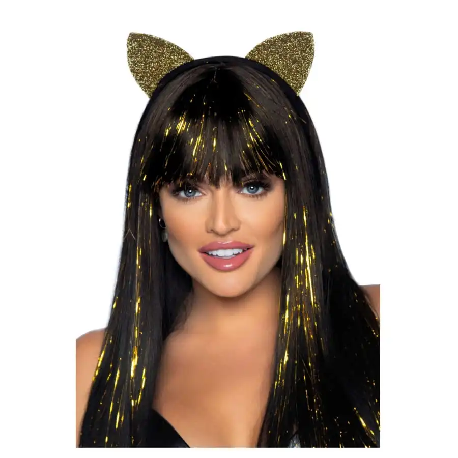 Ce serre-tête ultra chic ajoutera un côté glamour à votre tenue animale. Il est surmonté de magnifiques petites oreilles de chat dotées de reflets pailletés or, de toute beauté. Sa couleur noir le rend discret et donne l’impression d’avoir des oreilles sexy par-dessus la tête.