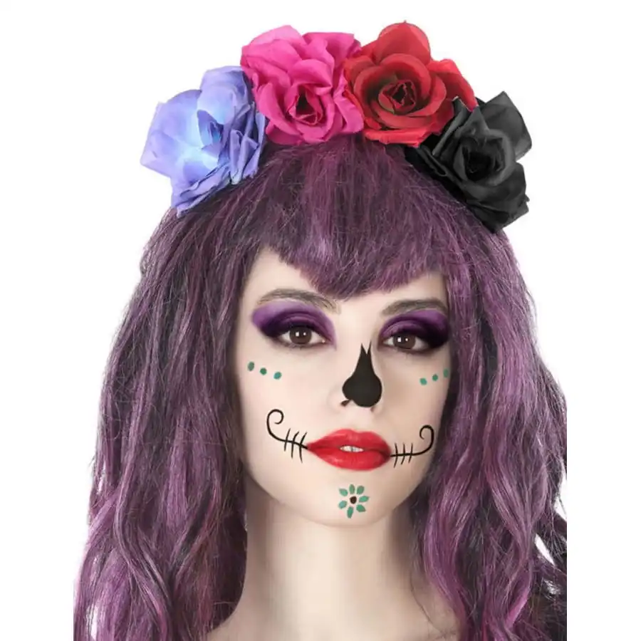 Redorez le blason de la culture mexicaine à l’occasion d’une fête entre amis le soir d’Halloween, grâce au serre-tête recouvert de fleurs colorées.