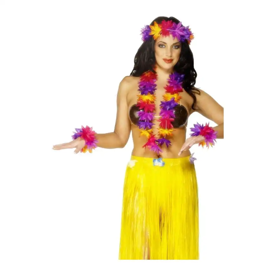 Ce set hawaïen coloré vous rendra encore plus belle pour une soirée sur le thème Antilles, exotique ou encore autour du monde. Il est composé d’une couronne avec des fleurs multicolore, d’un collier avec des fleurs multicolore ainsi que des bracelets.