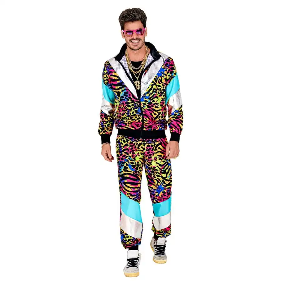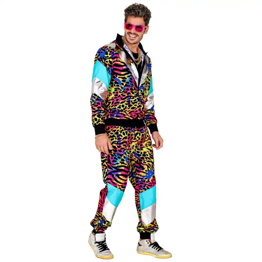 Parfait pour un enterrement de vie de garçon/jeune fille lors d’une soirée déjanté, le survêt imprimé animal coloré années 80, adulte fera forte impression sur tous les invités.