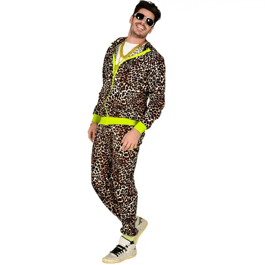 Misez sur l’originalité lors de votre dernière soirée de célibat, avec le survêtement années 80 motifs léopard.