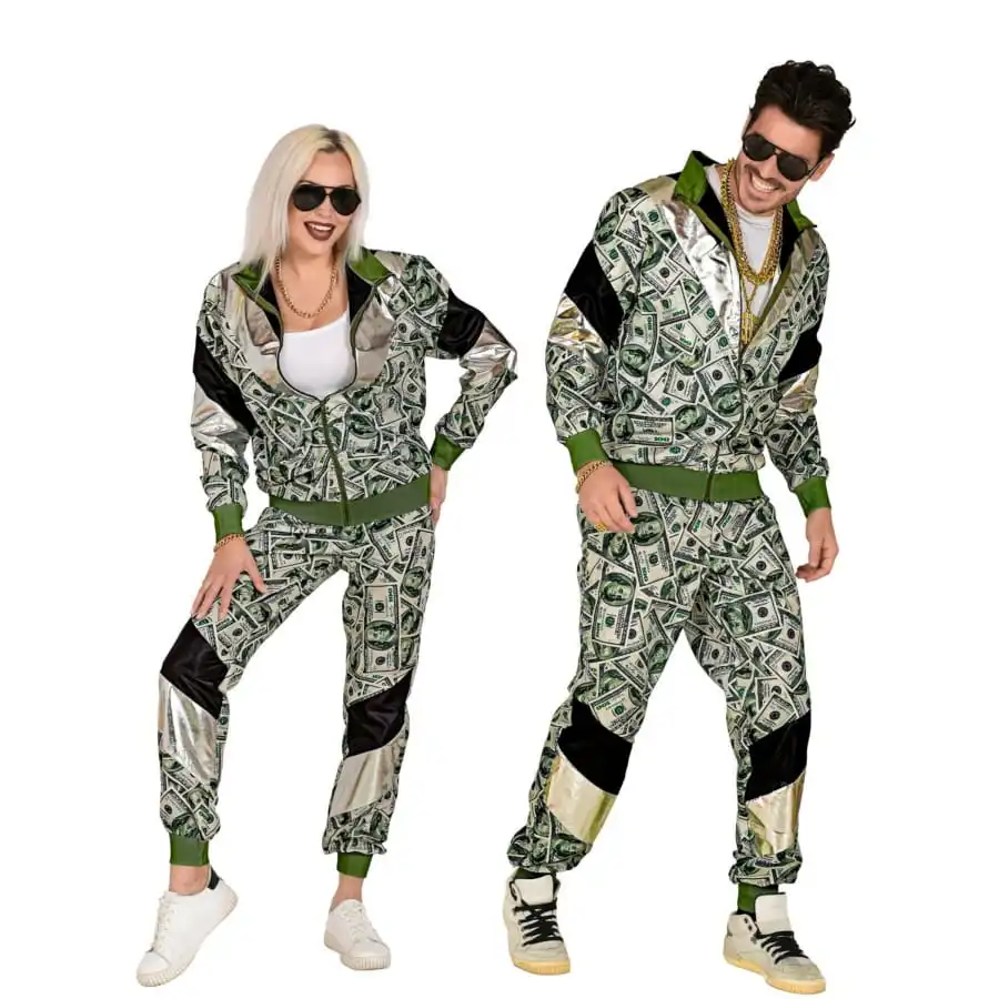 Offrez-vous une soirée bling bling version rétro, avec le survêtement dollar pour adulte type années 80.