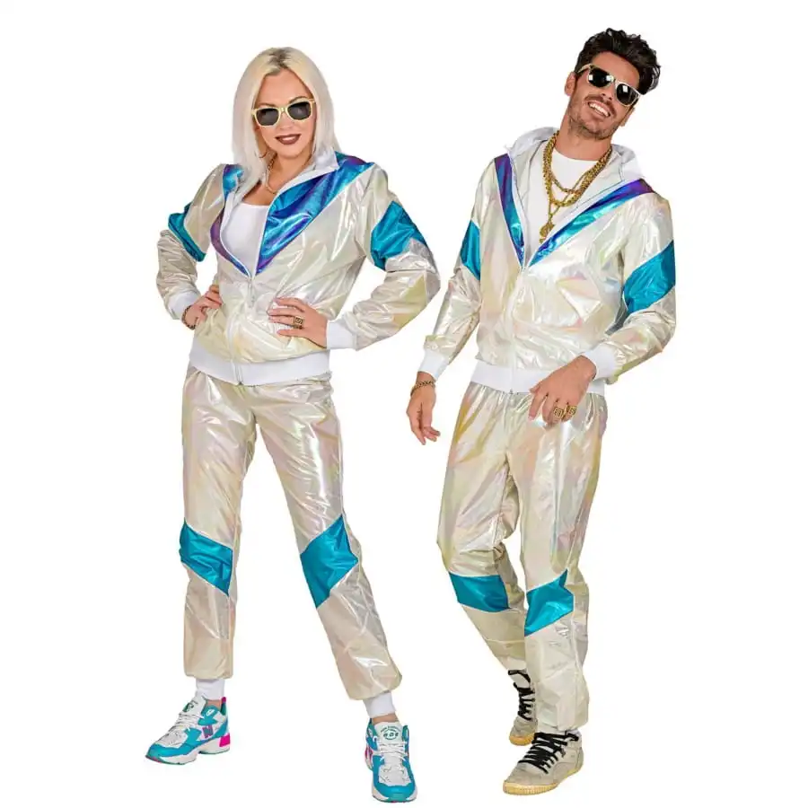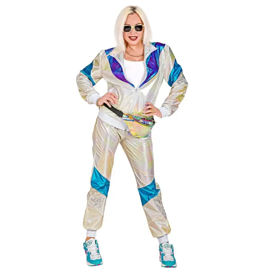 Faites une apparition toute en brillance en arborant le survêtement holographique années 80 pour adulte.