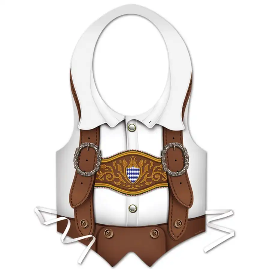 Sur le devant de cet accessoire en plastique est imprimĂ© le buste d’un homme avec les vĂŞtements d’un bavarois Ă l’occasion de l’Oktoberbest.