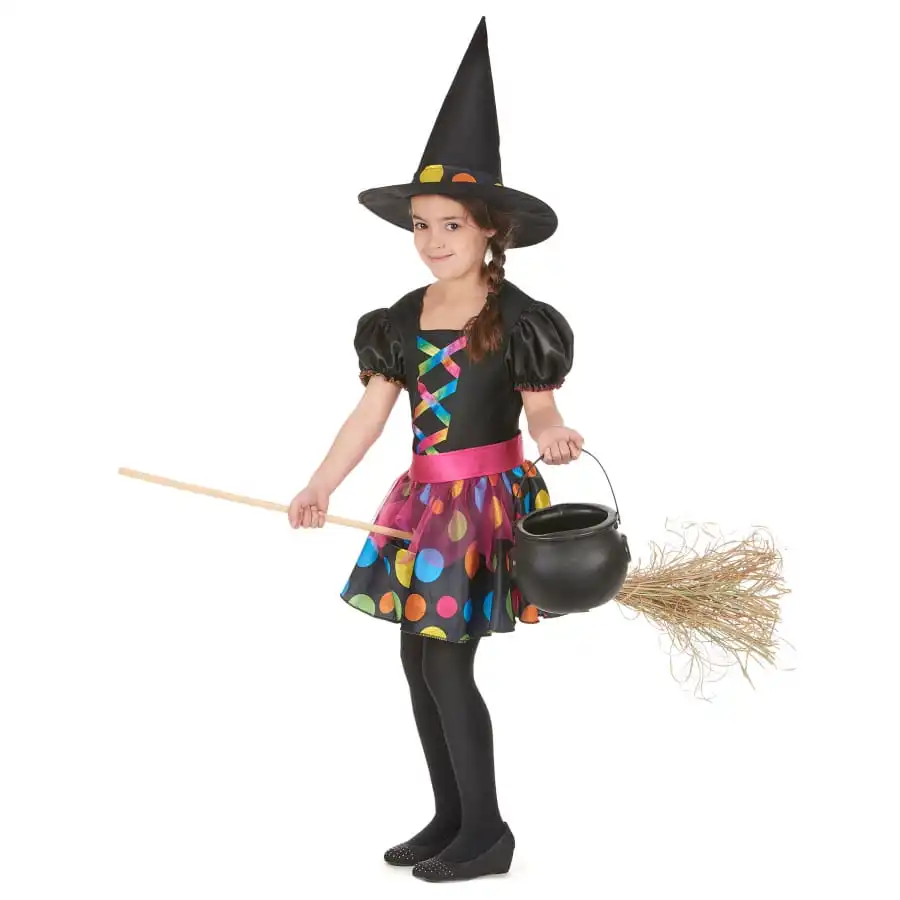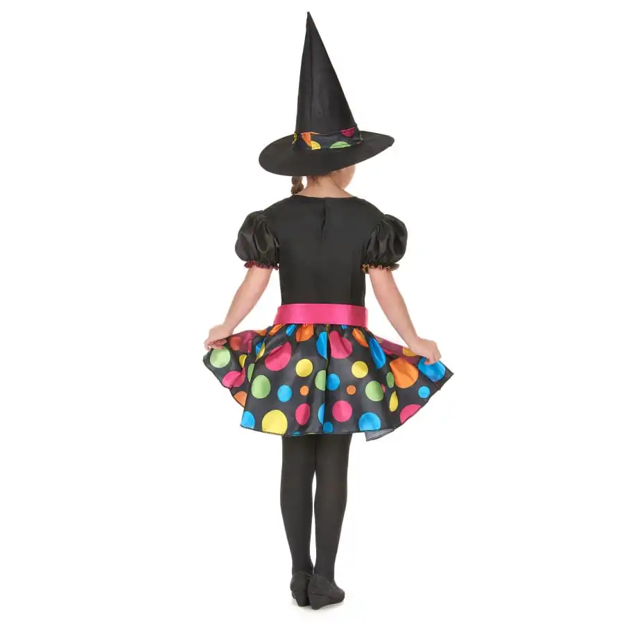 Déguisez votre petite fille en gentille sorcière grâce à cette Tenue colorée à gros pois de petite sorcière.