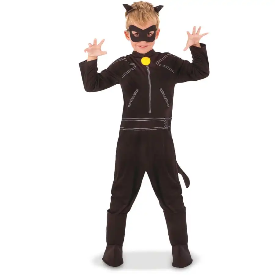 Il s’agit d’une tenue composĂ©e d’une combinaison noire, qui reproduit fidèlement le costume de Chat Noir, le cĂ©lèbre coĂ©quipier de ladybug dans la sĂ©rie animĂ©e Miraculous.
