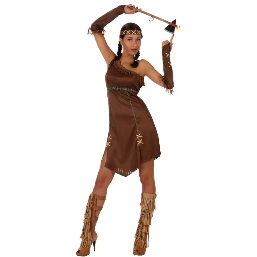 InterprĂ©tez le rĂ´le d’une charmante amĂ©rindienne lors d’une soirĂ©e Ă thème western. Vous ne manquerez pas d’originalitĂ© dans cette tenue marron unie d’indienne pour femme adulte. Le dĂ©guisement est formĂ© par une robe Ă franges de couleur marron. Elle est agrĂ©mentĂ©e de quelques liserĂ©s dorĂ©s. Sa coupe est très stylĂ©e, avec une seule bretelle ainsi que des petites fentes sur le bas. Elle est faite pour mettre en valeur votre silhouette. Une paire de manchons de couleur assortie viendront couvrir vos avant-bras. Optez pour une coiffure assez traditionnelle avec des nattes. Vous disposerez d’un bandeau marron pour apporter la touche amĂ©rindienne. Retrouvez du maquillage, des armes d’indiens et toutes sortes d’accessoires sur notre site happyfete pour complĂ©ter au mieux votre costume.