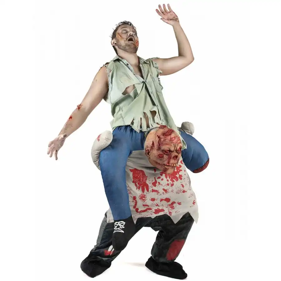 Pour une Halloween terrifiante, laissez-vous tenter par cette tenue zombie carry me pour adulte Ă faire glacer le sang.