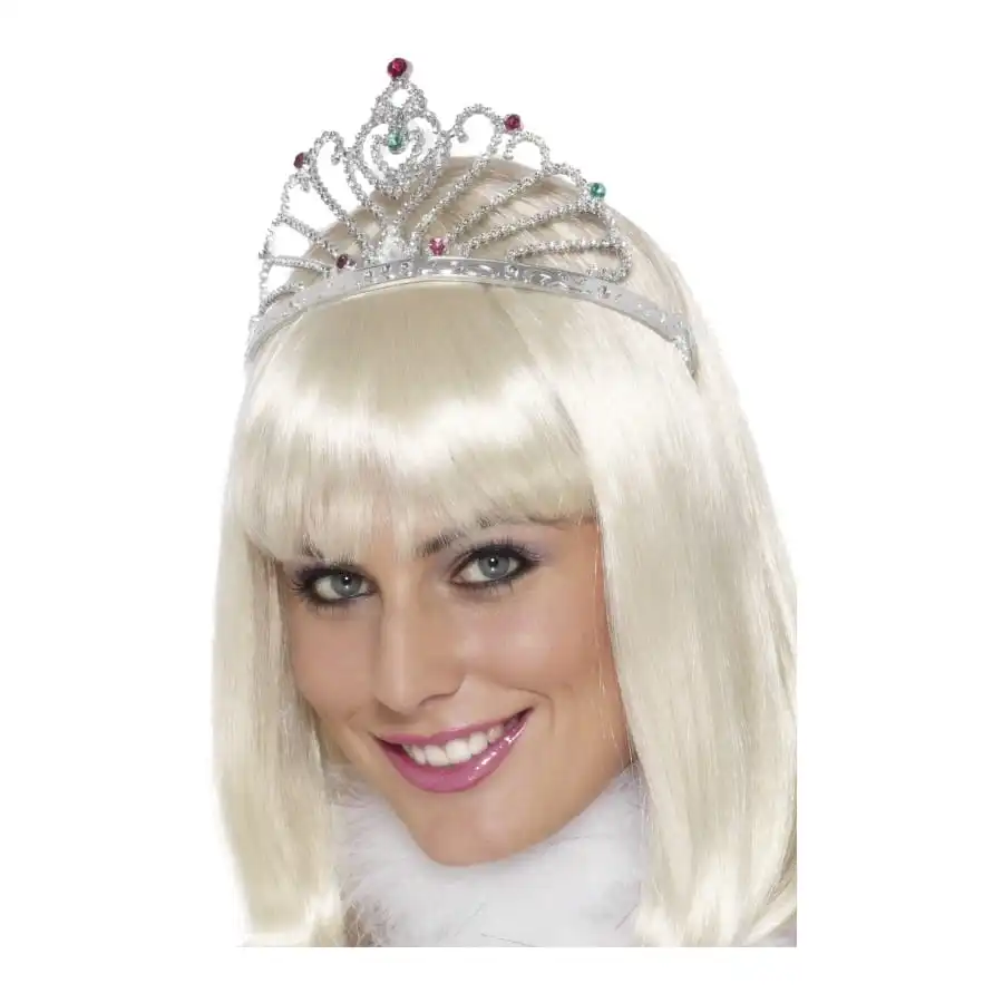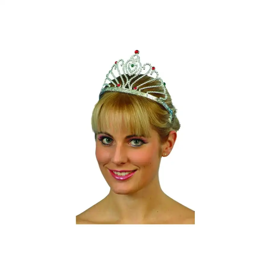 Tiare de princesse couleur argent pour fille, adolescente ou femme ornée de fausses pierres avec un petit coeur au milieu. Cet accessoire est idéal pour incarner une princesse Disney.