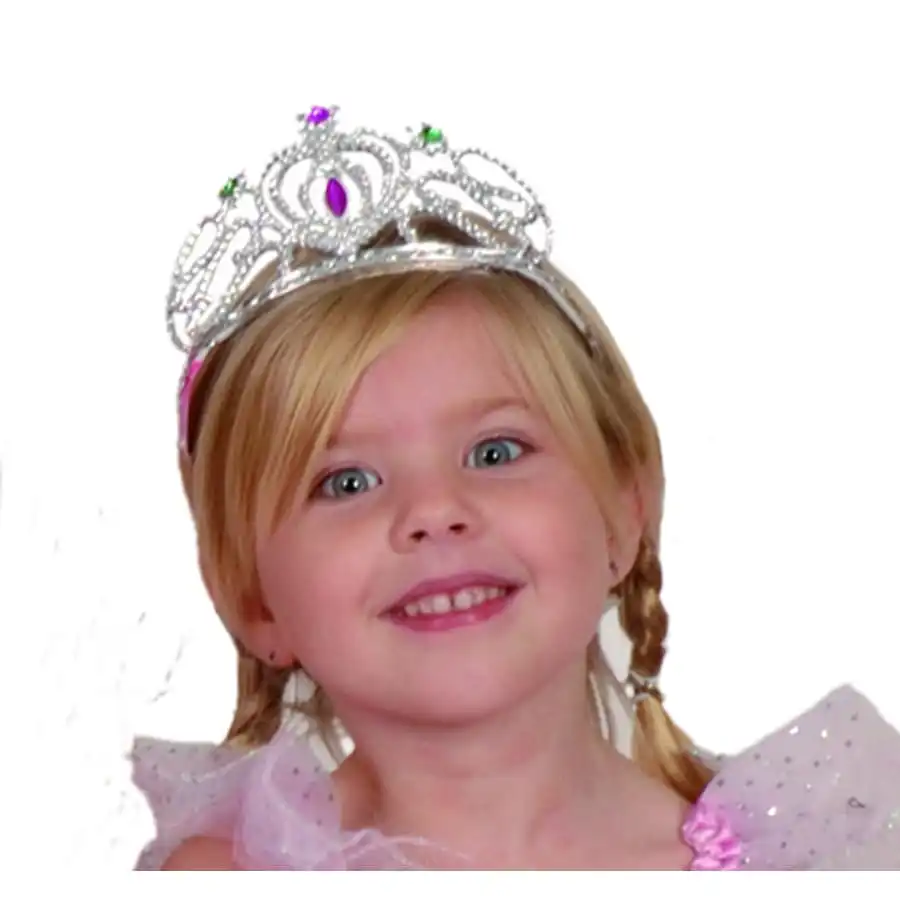 Tiare de conte de fĂ©e pour enfant entièrement en argent et ornĂ© de fausses pierres prĂ©cieuses. Lors de la commande vous ne pourrez choisir ni le modèle ni la couleur de l’accessoire. Vous le recevrez comme prĂ©sentĂ©. Il est idĂ©al pour complĂ©ter une tenue de princesse, surtout si votre fille est fan des princesses Disney.