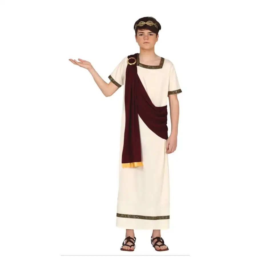Remontez le temps l’instant d’une soirĂ©e sur le thème historique, en portant la toge blanche d’enfant romain avec drapĂ© rouge.