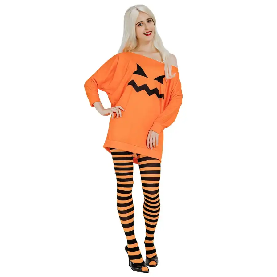 N’attendez plus pour vous dĂ©marquer lors de la fĂŞte d’Halloween avec cette adorable tunique citrouille pour femme ! Cette tenue originale et amusante est parfaite pour celles qui souhaitent sortir des sentiers battus et apporter un peu d’humour Ă leur dĂ©guisement.