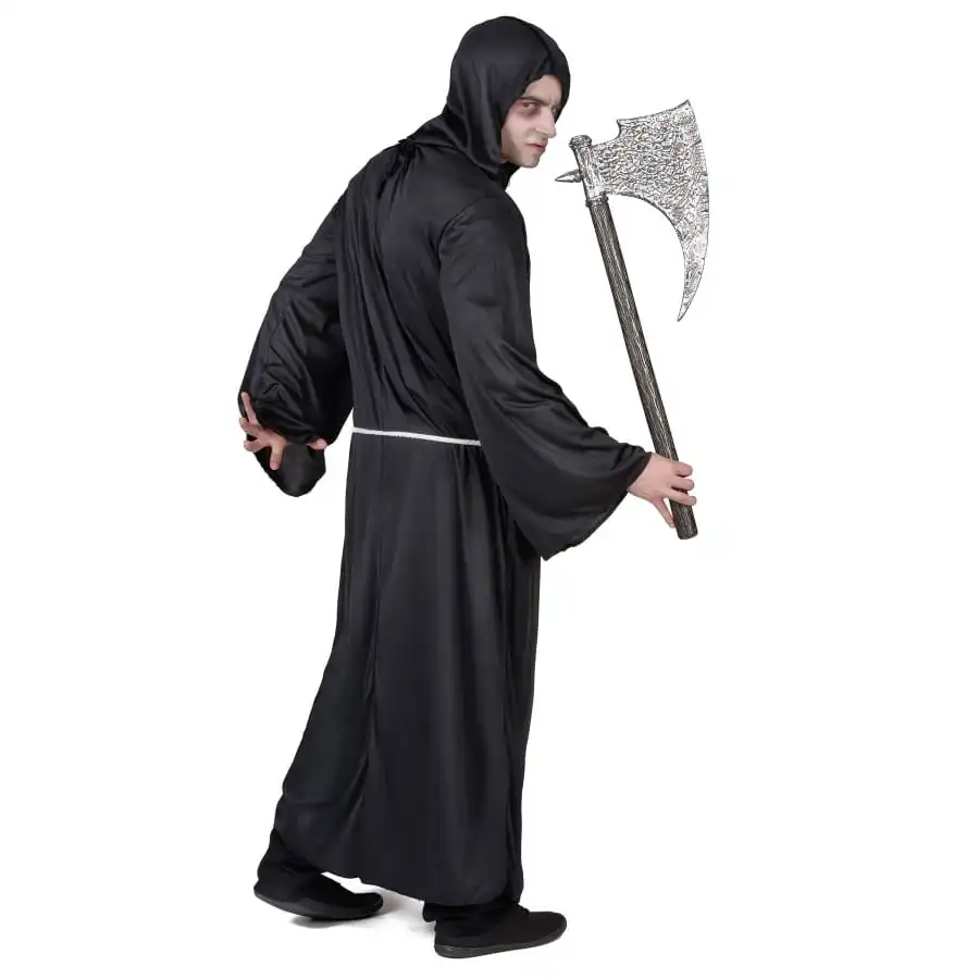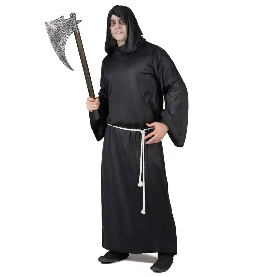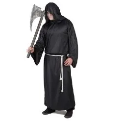 Mettez-vous dans la peau de l’ange de la mort, le temps de la fĂŞte d’halloween. Ce dĂ©guisement demeure certainement l’un des plus emblĂ©matiques de cette festivitĂ©. Si l’idĂ©e vous tente, nous vous proposons la tunique de la faucheuse pour homme adulte, disponible sur notre site. Elle se prĂ©sente sous la forme d’une longue robe noire pourvue de capuche recouvrant presque le visage. La matière choisie pour la fabriquer est fluide afin de garantir un meilleur confort. D’autant plus que la tenue reste assez large. Toutefois, la taille de la tunique de la faucheuse pour homme adulte se trouve marquĂ©e Ă l’aide d’une ceinture faite d’une corde blanche.